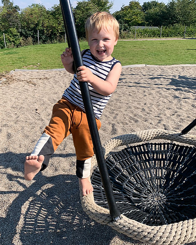 Sikkerhedsgyngesædet er udviklet med en tyk gummioverflade, så barnet ikke kan glide af gyngen, når turen går på sit højeste. Vi anbefaler sikkerhedsgyngesædet til børn over 3 år. Her kan børnene selv sidde og svinge sig i gang.