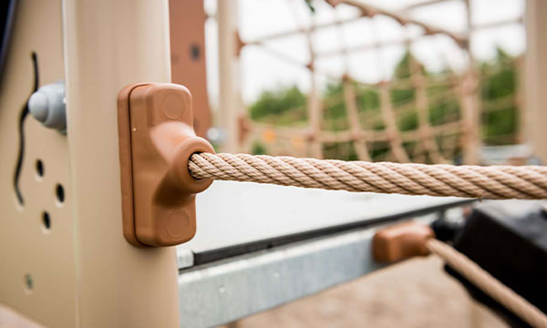 Selve indretningen af legepladsen foregår altid med fokus på samspillet mellem funktionalitet og sikkerhed. Derfor er overfladerne på alle sandkasser eksempelvis belagt med skridsikker gummi, så børnene ikke glider i vådt vejr. Samme teknologi er anvendt på sæder og ståflader, blandt andet på vippedyr og trapper. Vores tov er specialudviklet med indvævede stålwirer. På den måde holder tovet formen og det er umuligt at slide over. Derudover sikrer stålwirerne også tovet imod hærværk.