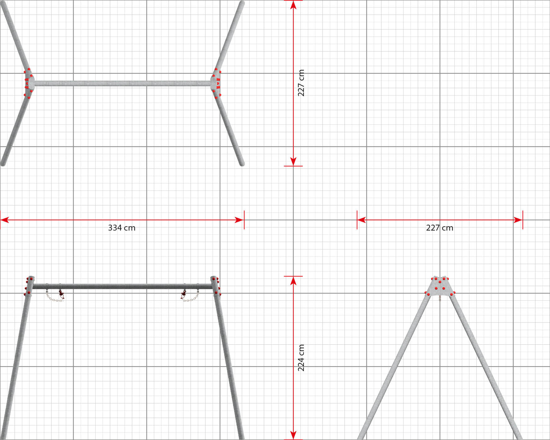Gyngestativet er produceret med en ekstra stærk overligger, da fuglereden koncentrerer vægten af flere børn på ét sted.