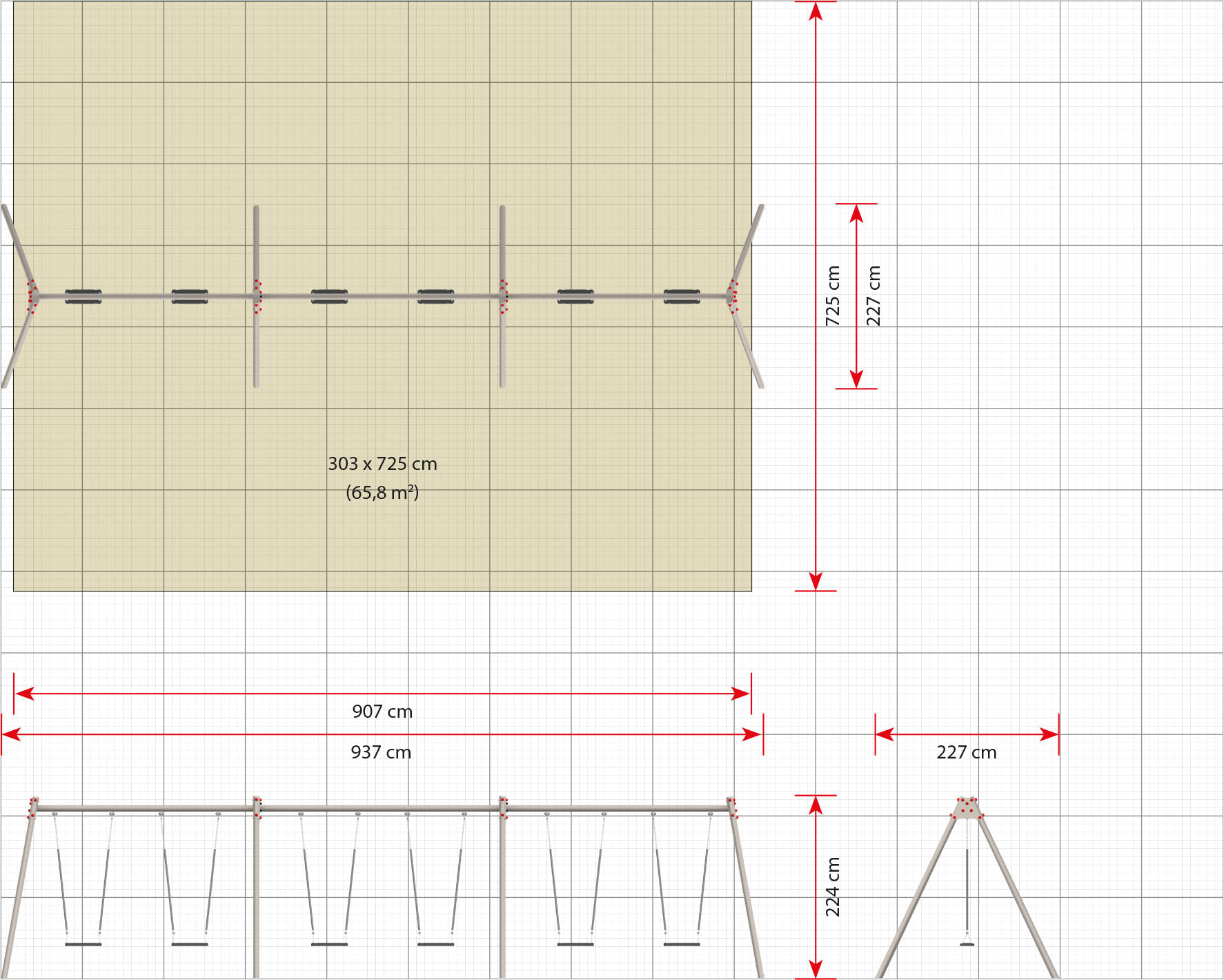Arealbehov inkl. sikkerhedsafstande (LxB)937 x 725 cm