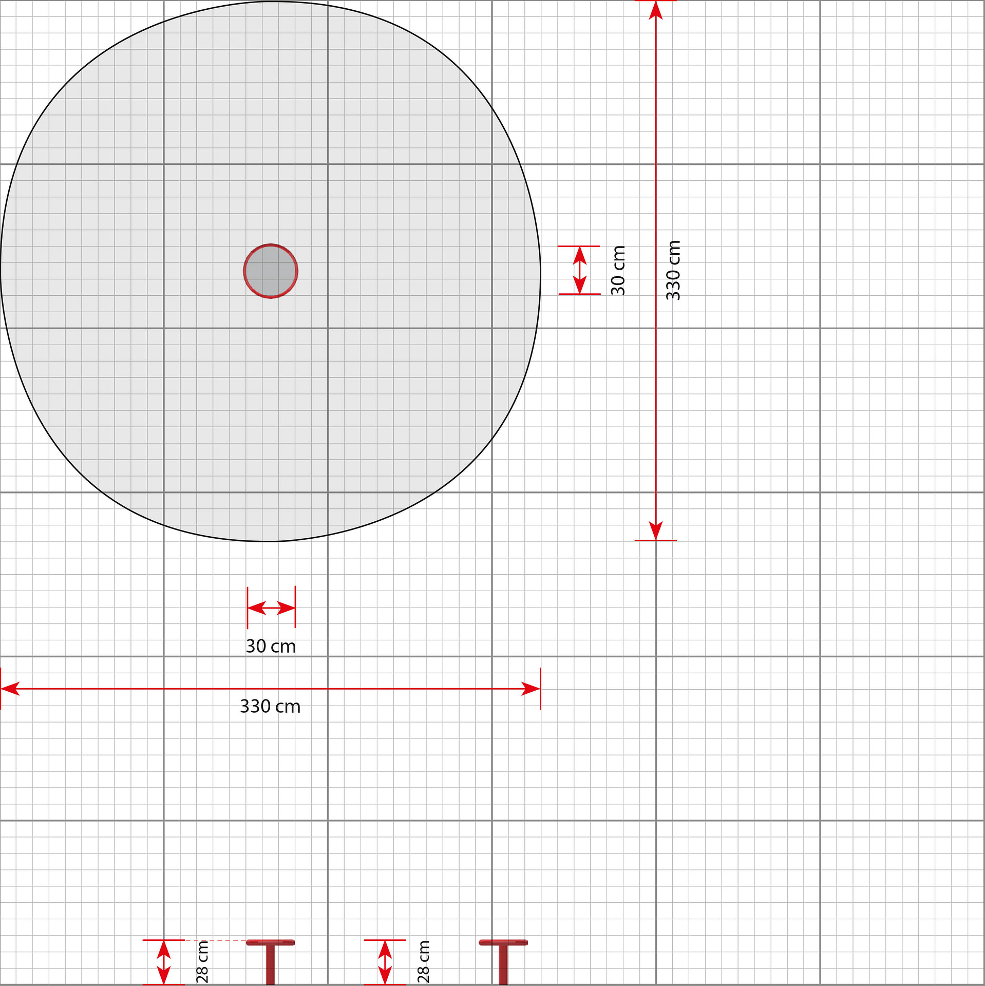 Arealbehov inkl. sikkerhedsafstande (LxB)330 x 330 cm