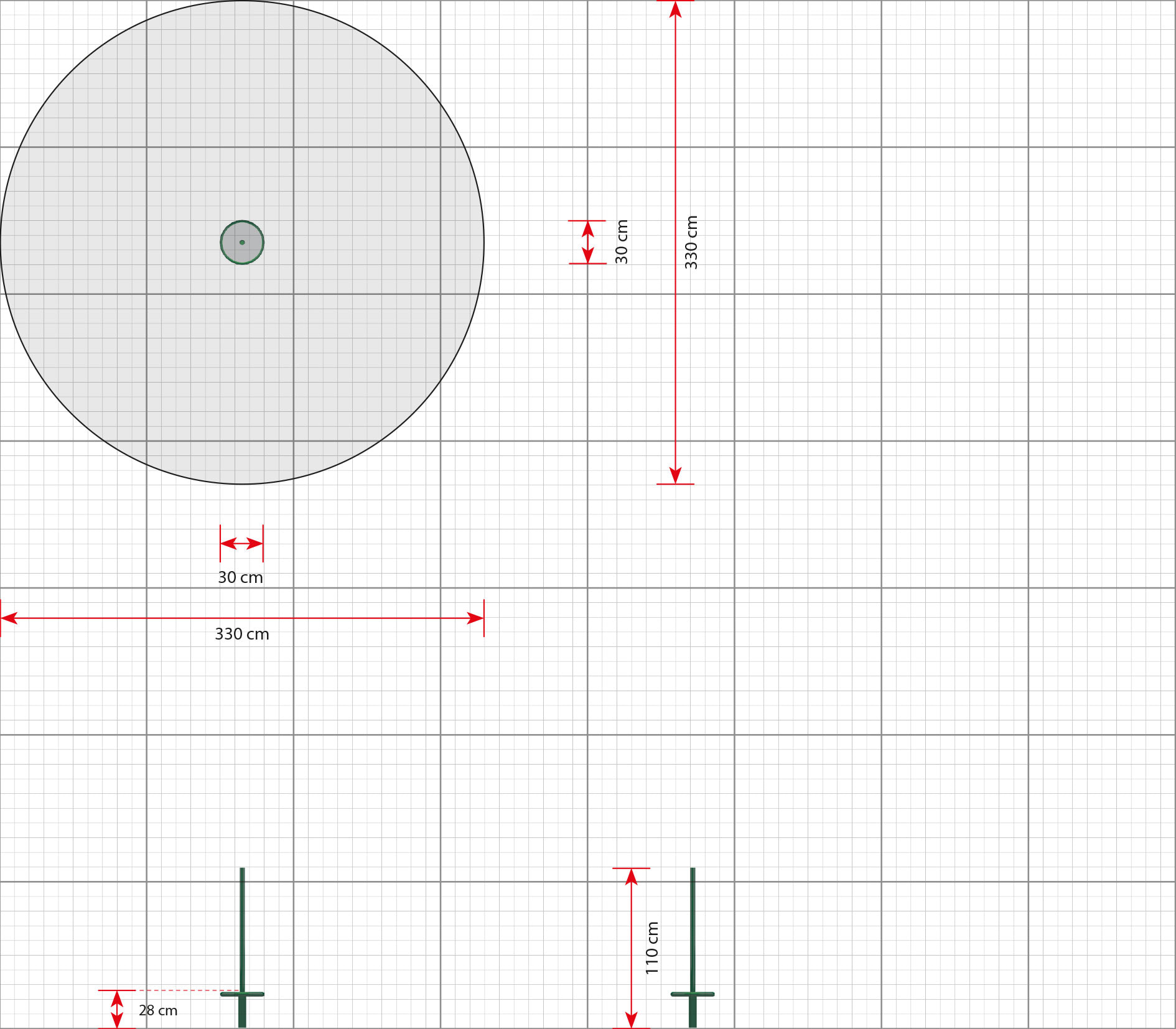 Arealbehov inkl. sikkerhedsafstande (LxB)330 x 330 cm
