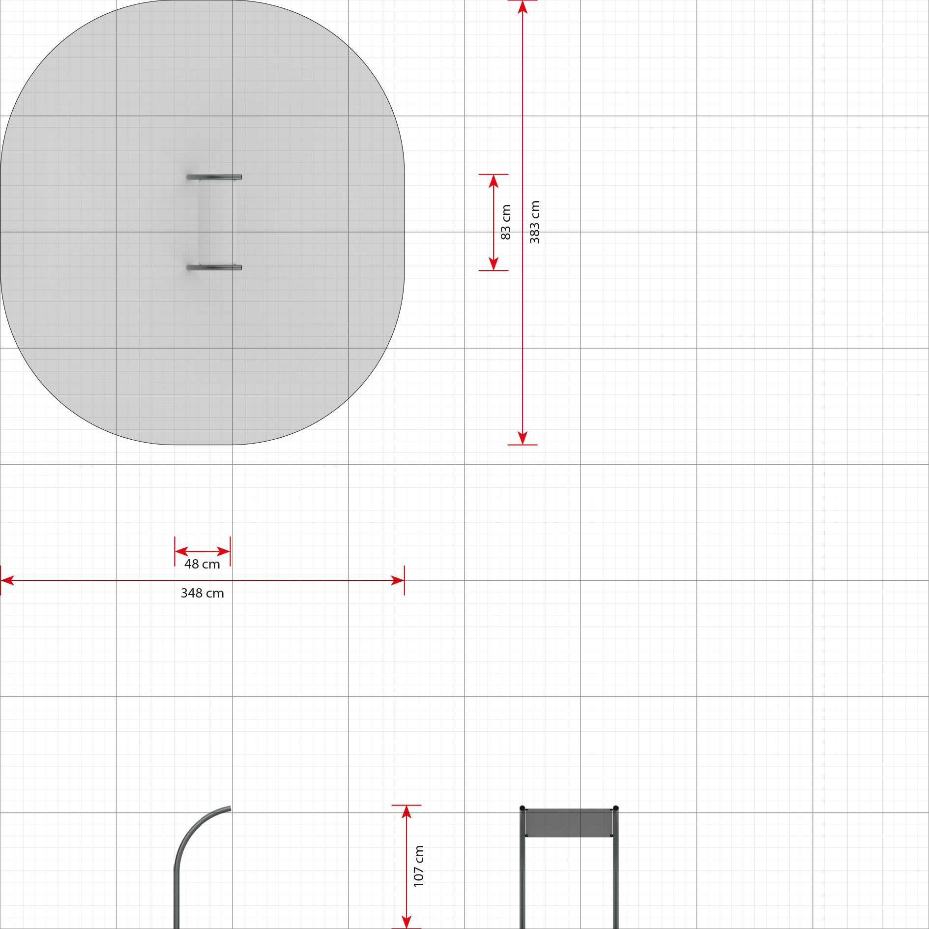 Arealbehov inkl. sikkerhedsafstande (LxB)383 x 348 cm