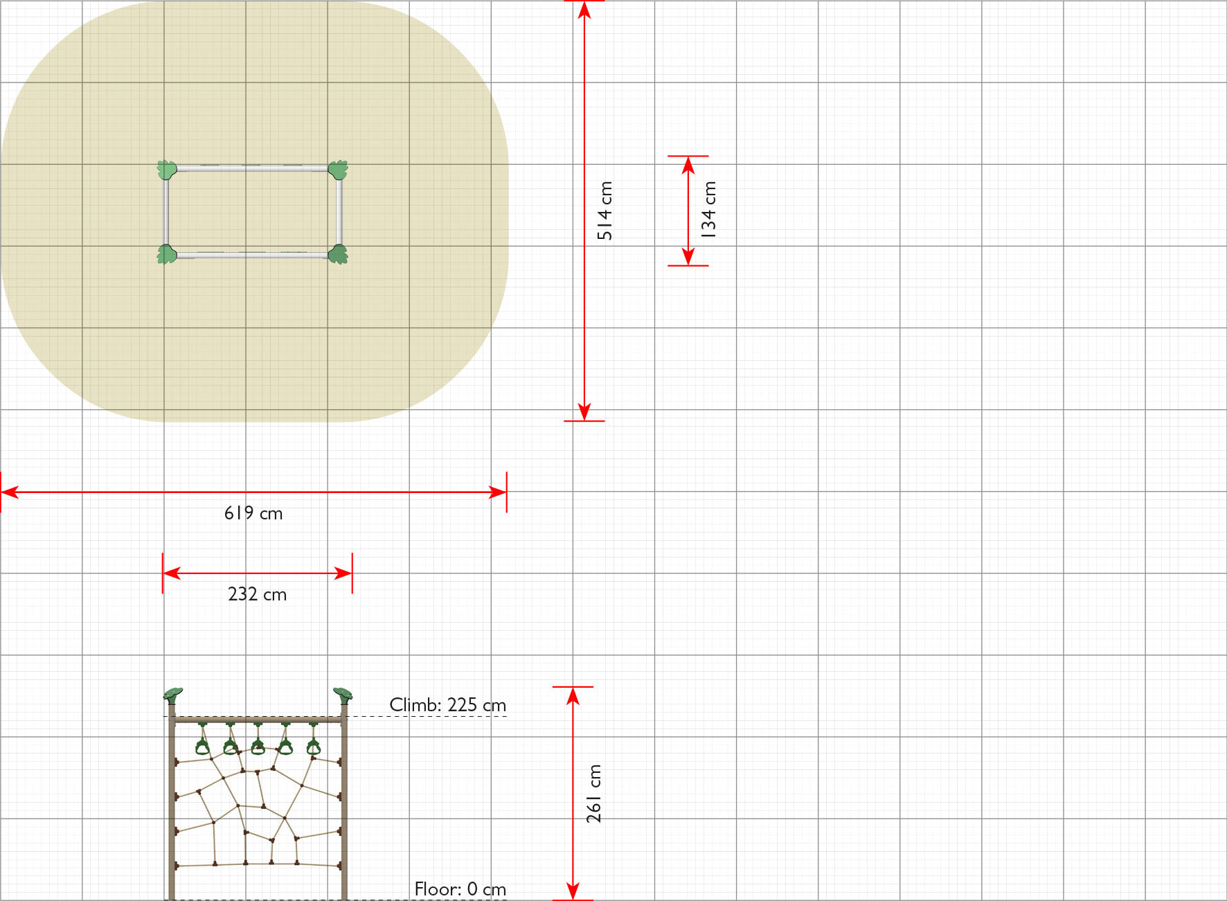 Alle klatrenet er fremstillet af taifun-tov, som har en stærk indvendig stålkerne med i alt 48 stålkerner. Dette giver i praksis en brudsikkerhed på 4500 kg. Det gør klatrenettet særdeles modstandsdygtigt mod hærværk og giver det en stabil konstruktion.