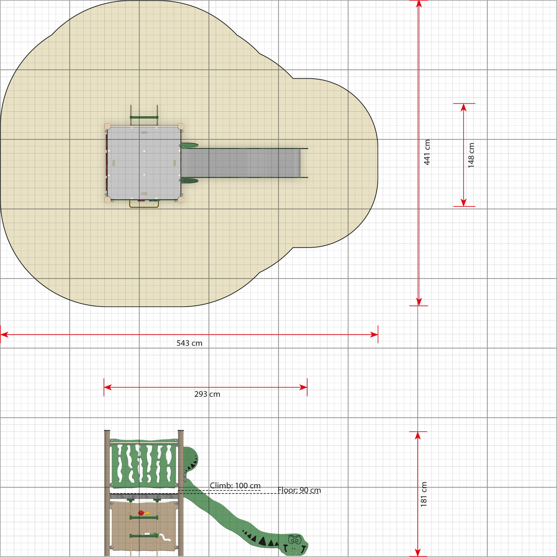 Legeredskabet er designet med et minimalt arealbehov, og derfor passer det nemt ind på de fleste legepladser. Hvis legeredskabet kræver faldunderlag, vil prisen også her være mindre.