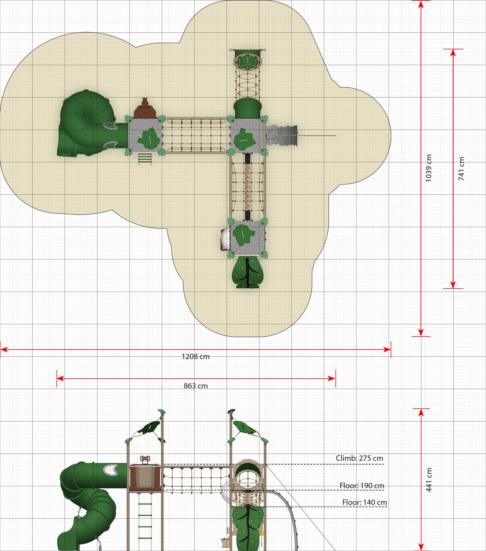 Cuzco legesystemet er designet til de større børn med gulvhøjder i 140 og 190 cm. Legesystemet er meget motorisk udfordrende med mange klatre- og balanceaktiviteter. Det er kun en svær klatretur op ad de buede klatreplader og netslusen eller den gyngende rebstige, som giver adgang til legesystemets højeste tårn. Herfra giver udkigstønden en god udsigt over hele legepladsen. Fra det øverste tårn venter en susende tur med fart over feltet og kildren i maven igennem tunnelrutsjebanen.