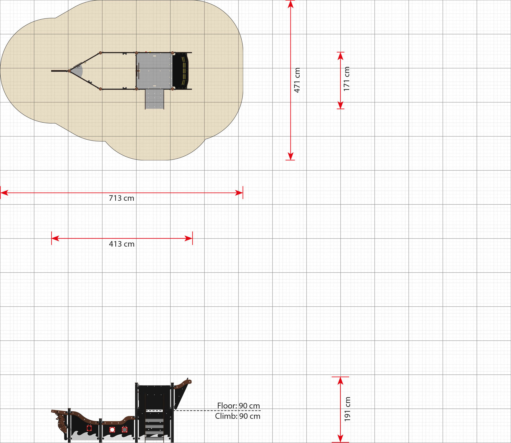 Arealbehov inkl. sikkerhedsafstande (LxB)713 x 471 cm