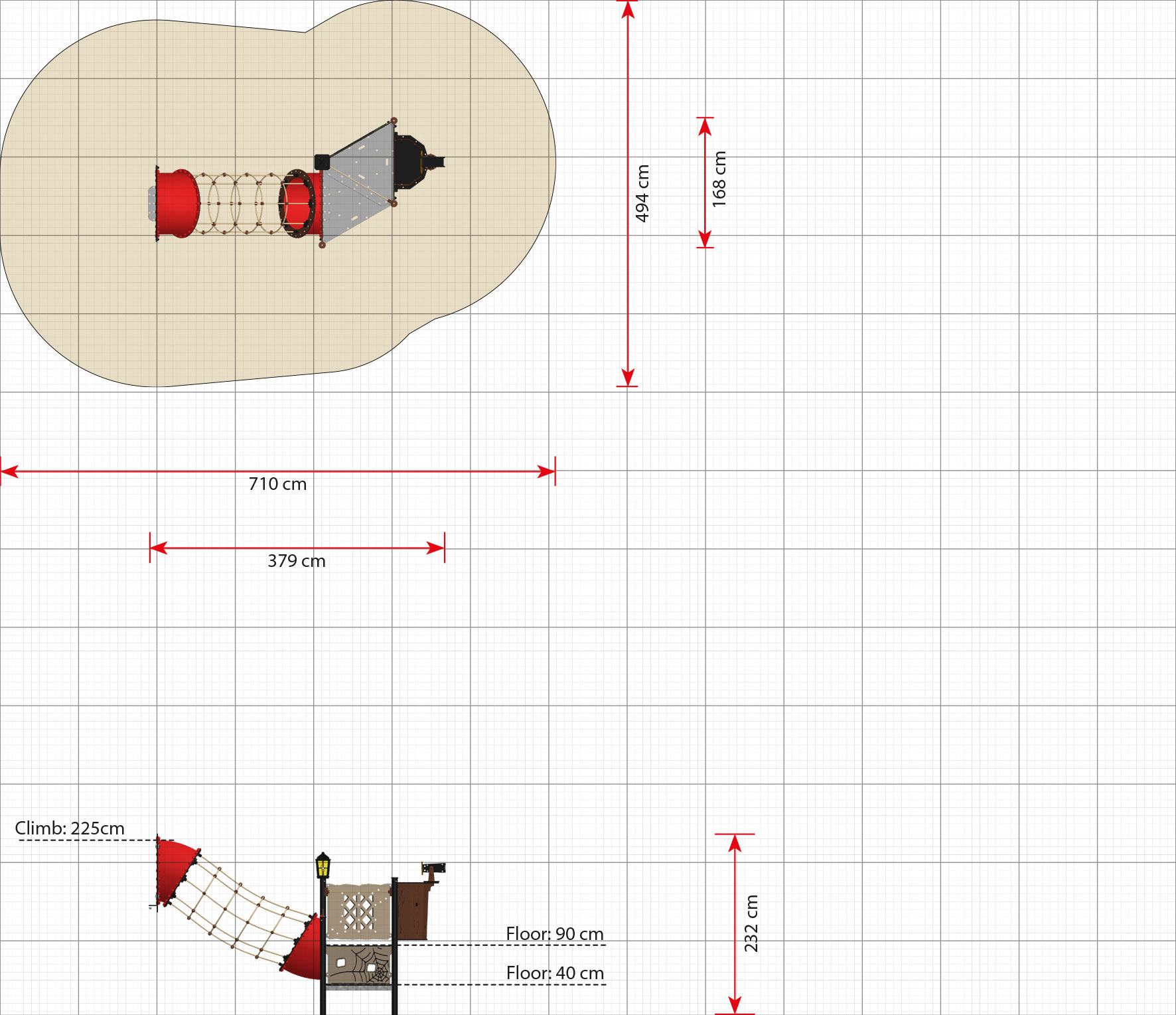 Netsluserne fås i forskellige højder. Denne netsluse passer til piratskib: LP310 Elisabeth, LP311 Maria, LP312 Juliane, LP313 Victoria og LP315 Absalon. Ønsker du en mere simpel hængebro, kan du se på hængebroen LP150 Bell.