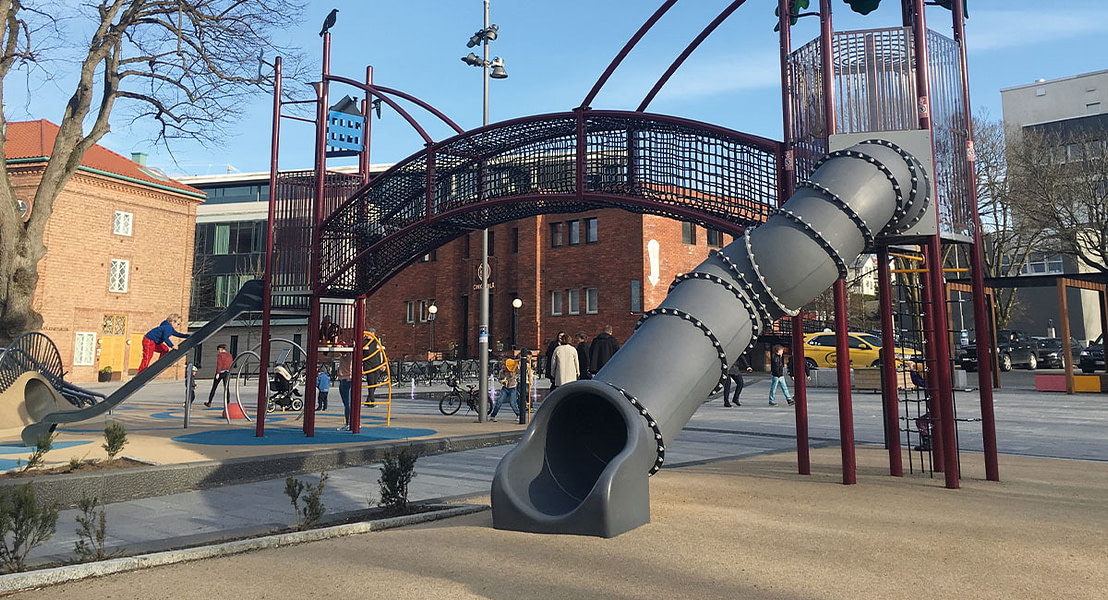 I den norske by Moss, er der blevet indrettet en stor legeplads i byens centrum. Til projektet er blandt andet anvendt LEDONs tunnelrutsjebaner.